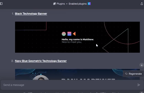 选择:提交请求后,ChatGPT 会根据输入给出一系列的视觉效果。用户可以点击喜欢的设计上方的链接进行选择。