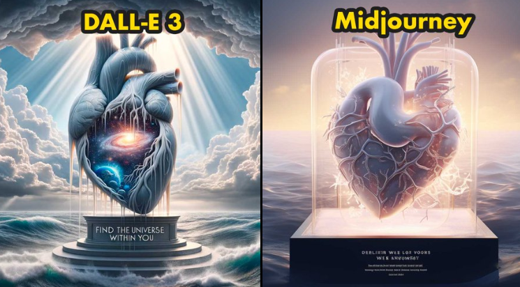 然后让他们生成一张关于半透明心脏的图片,并且要求在心脏下面刻上一行特定的名言。