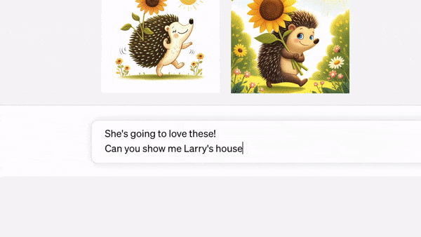 然后把这个刺猬命名成 Larry ,可以再让 ChatGPT 多生成几张它的照片。