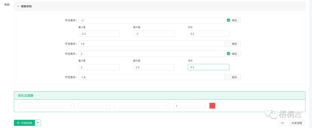fmz的回测功能有自动参数调优,然后我们使用这个功能优化参数。