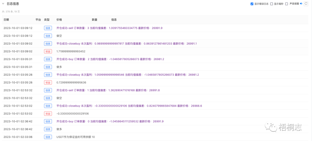 先用小资金实盘,数字货币量化门槛特别低,相较于股票一手动辄几千元的测试成本,数字货币只需要10U就够了。下面是实盘的交易订单。