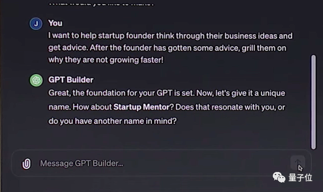 现场只进行了3轮和GPT Builder的对话,就构建好了一个Startup Menter。