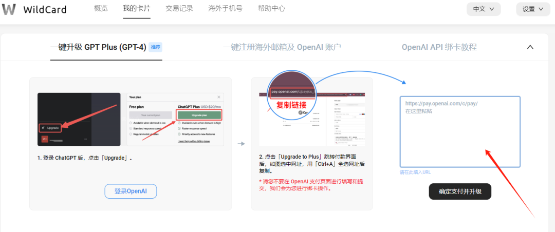 BeWildCard这个平台,提供了开卡、注册、升级一条龙功能,注册 ChatGPT 需要的所有工具都能在这里找到,帮我们节省了很大的时间和精力。