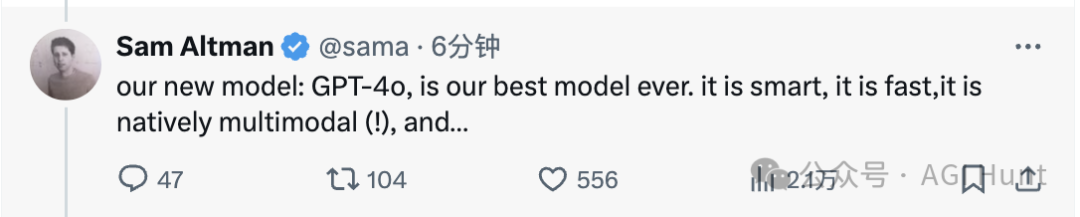 OpenAI 官方账号发布全新模型:GPT-4o