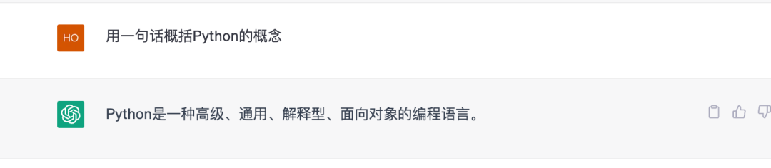 案例:明确要求:“用一句话概括Python的概念。”