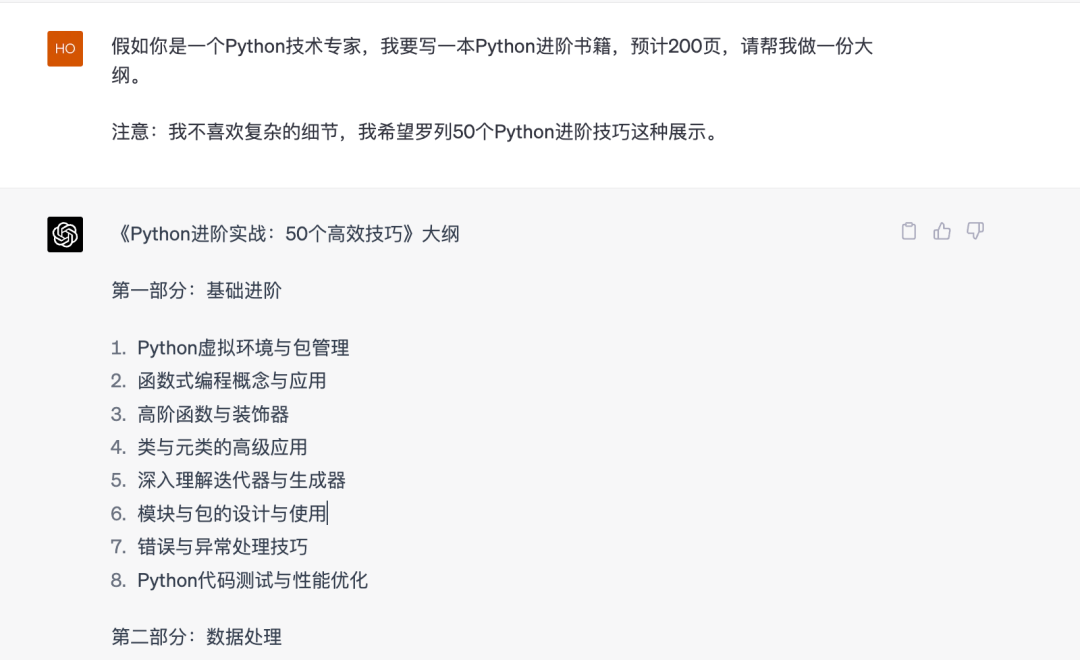 假如你是一个Python技术专家,涛哥我要写一本Python进阶书籍,预计200页,请帮我做一份大纲。注意:我不喜欢复杂的细节,我希望罗列50个Python进阶技巧这种展示。。