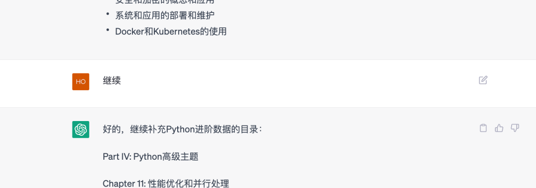 很多时候由于答案很长,经常出现断掉的情况,这个时候我们回复「继续」即可