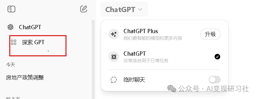 点击 左侧的“探索GPT”