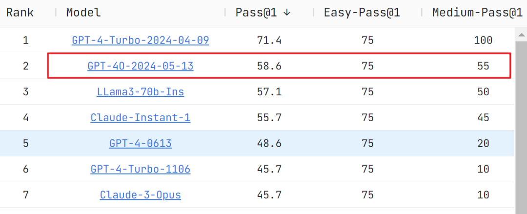 (TOP1是 GPT-4 Turbo),并且额外提供: