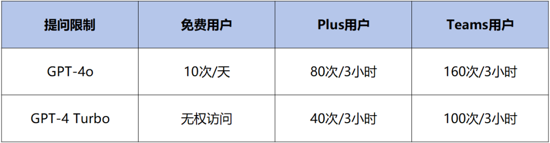 Plus可以发送更多消息,而Teams用户的提问次数更是Plus的2倍。