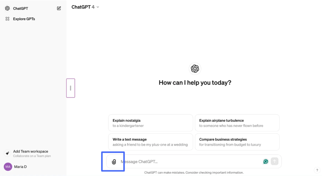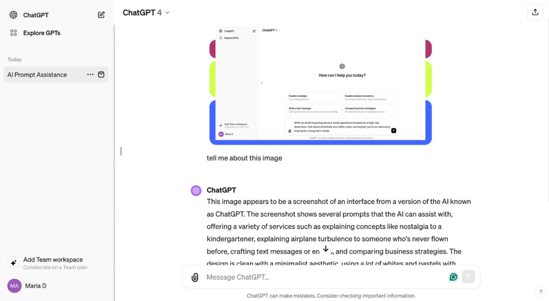 添加图像或文件时,你还可以告诉 ChatGPT 你想用它做什么。你可以要求 GPT-4 转录、描述或告诉你有关你上传的图像的信息。