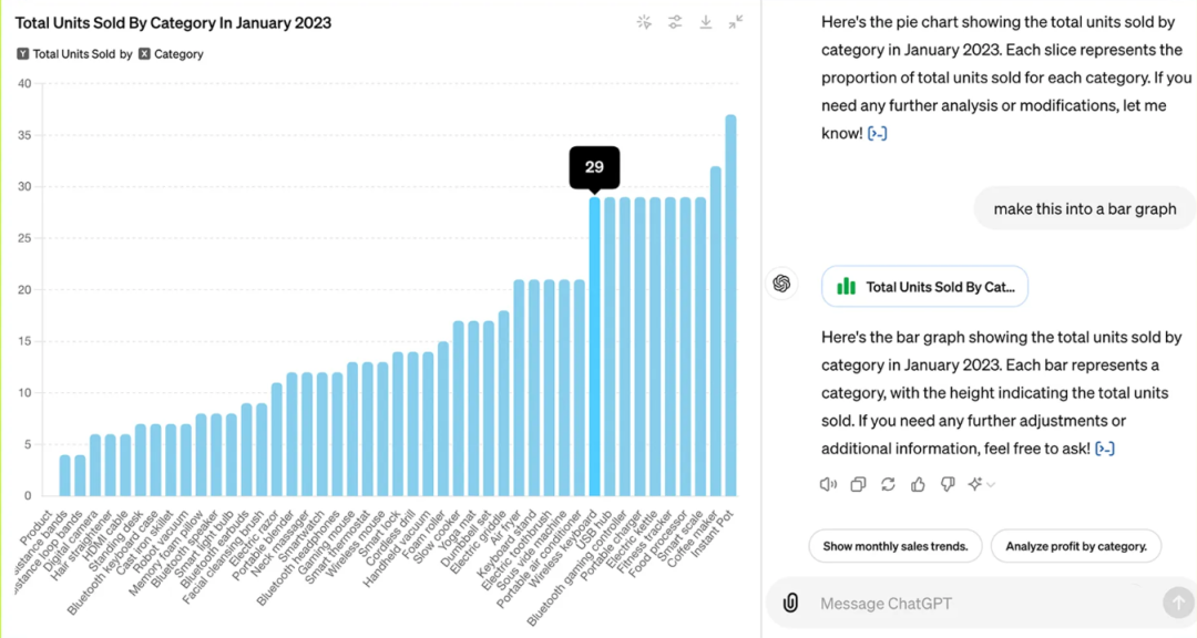 导入电子表格后,你可以向 ChatGPT 提问有关数据的问题,例如,"每次销售的平均佣金数是多少?