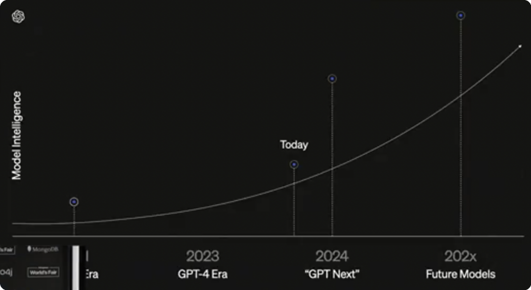 4)下一个模型GPT Next,根据时间轴上写的2024,看来年底肯定发布了,GPTNext 大约比 GPT4 智能 2 倍