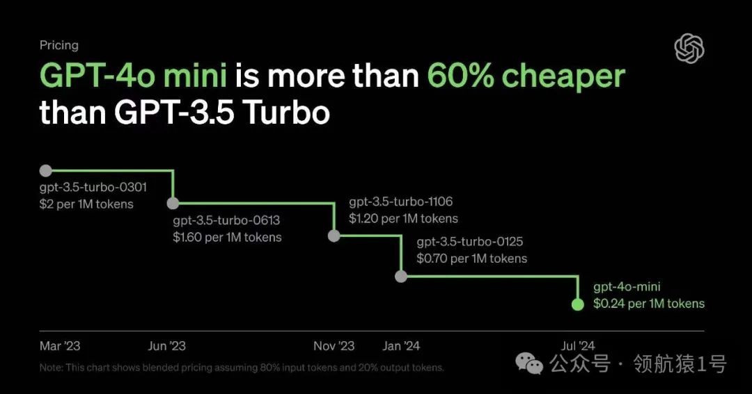 📈 发展历程:自2022年OpenAI推出text-davinci-003以来,GPT-4o mini的每tokens成本下降了99%,而性能却有了质的飞跃。