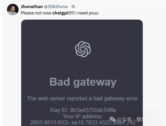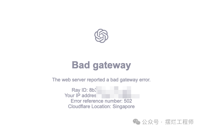 今天在用chatgpt时,突然挂了,还以为封了。chatgpt的页面都直接bad gateway 挂掉了。还没有到登录呢,直接是chatgpt官网挂了。