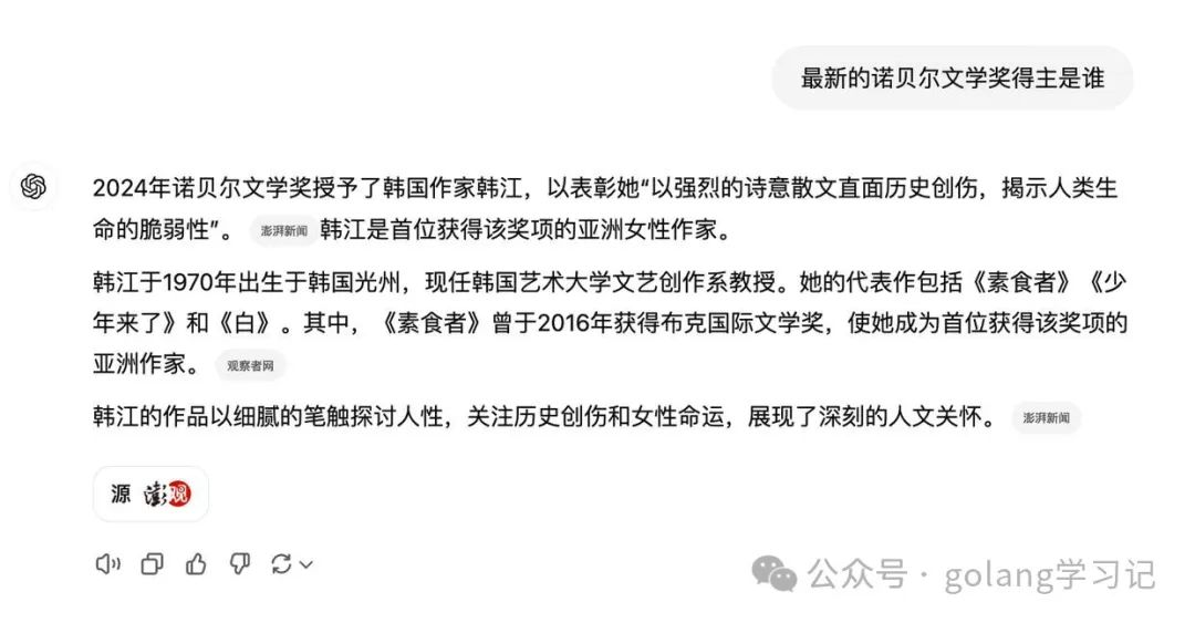 以一个具体的栗子来看看 ChatGPT search 效果如何?比如这里搜索今年的诺贝尔文学奖得主