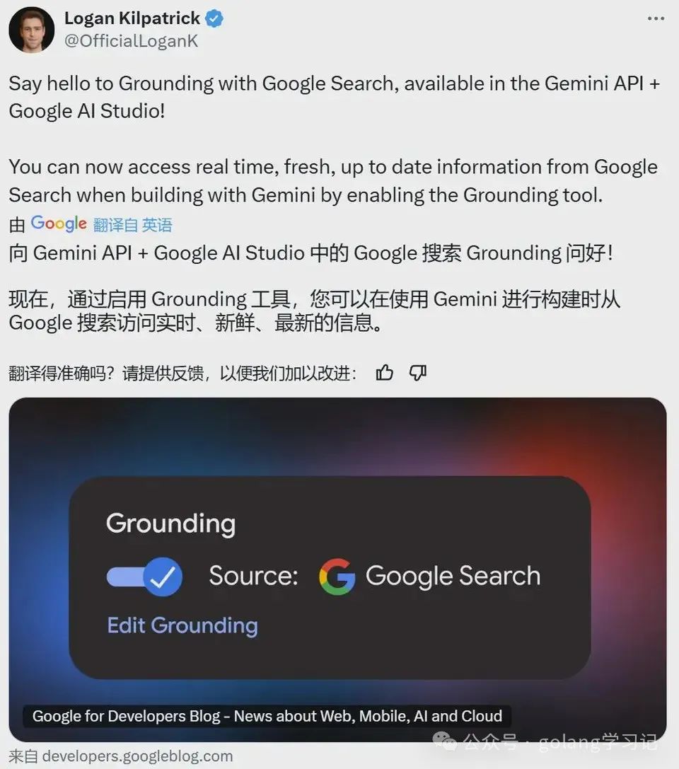 谷歌目前的 AI 搜索 Grounding 是这样的