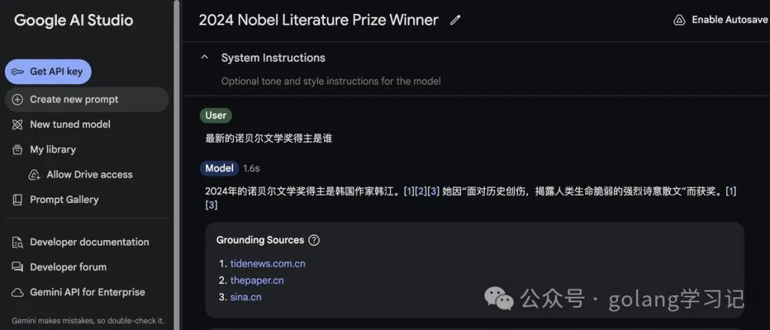 下面是谷歌 AI studio 的效果