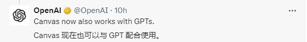 针对不同任务的自定义GPT,现在可以直接集成Canvas功能。