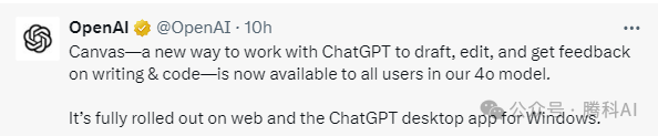 ChatGPT Canvas功能全面升级,正式面向全体用户开放!免费用户:我也有份?