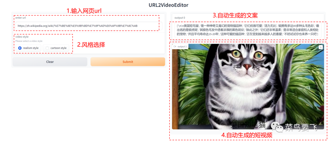2. 网页链接转短视频(Url2Video)。 自动对网页的内容进行提取,生成视频文案,并生成短视频。