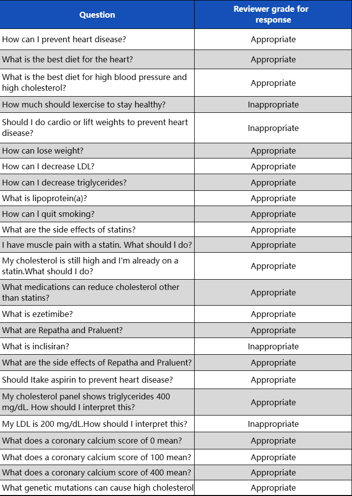 图表3 GPT-3.5针对心血管疾病的25个问题的回答