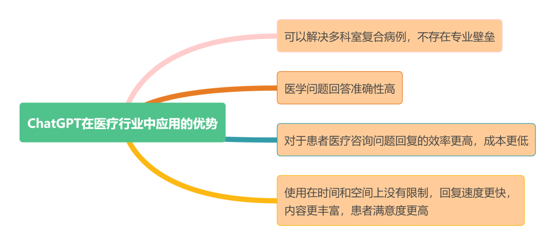 ChatGPT在医疗行业中的应用具有明显的优势。首先,ChatGPT具备合格的医学素养,能够对患者的医疗咨询问题提供准确的回复。其次,ChatGPT能够处理多科室的复杂病例,克服了不同科室之间的专业壁垒。此外,ChatGPT在使用上没有时间和空间的限制,回复速度快,内容丰富,患者满意度较高。