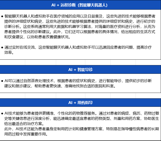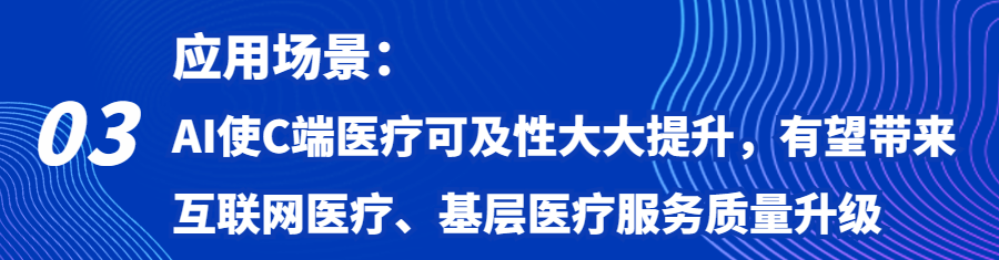 我们认为,随着人工智能技术的不断发展,AI技术在帮助提高医疗服务的可及性和质量上是明显的,为患者提供更加便捷、高效、精准的医疗服务。可以预见的,互联网医疗和基层(包括药店服务)医疗服务质量在AI辅助下将得到显著提升。