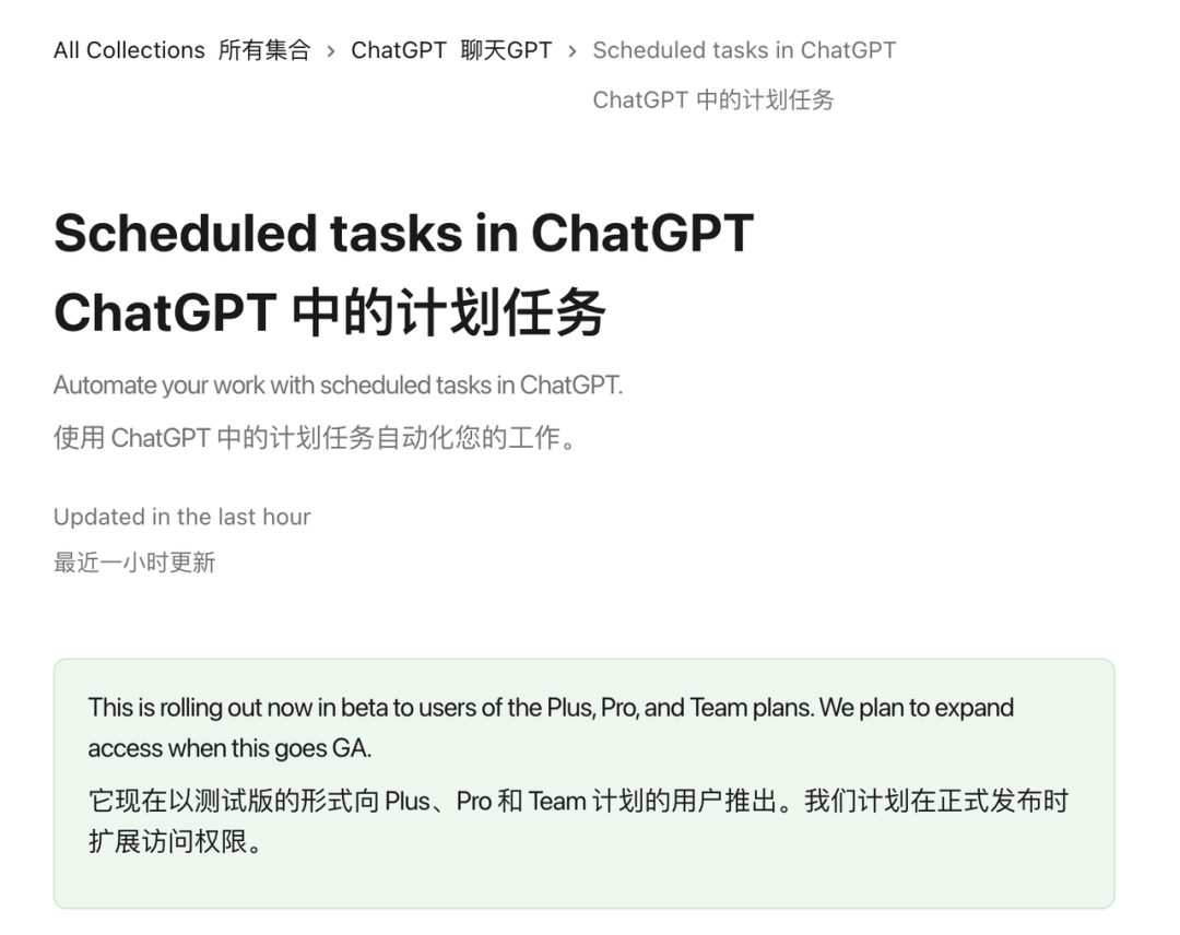 目前,Tasks 功能作为测试版,已向 Plus、Pro 和 Teams 用户开放,未来将扩展至所有 ChatGPT 用户。