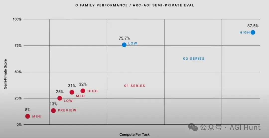 - 在ARC-AGI上得分88%,而普通人在这种高难度视觉推理问题上的平均分只有75%