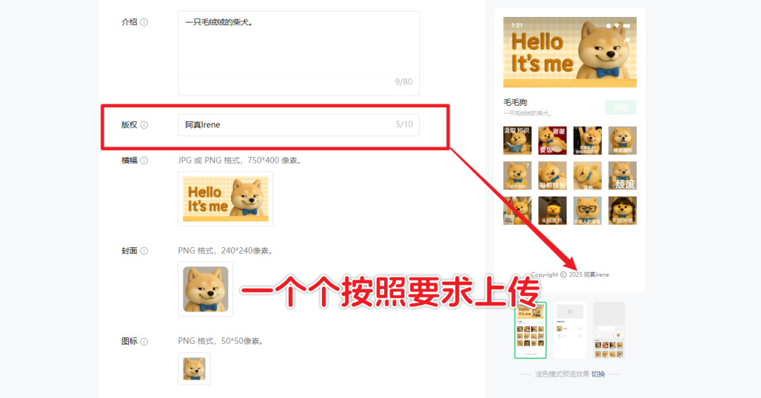 点击我画了红框的位置开始提交作品。不要选【创建形象】,因为那个是针对已上传的表情作品的。
