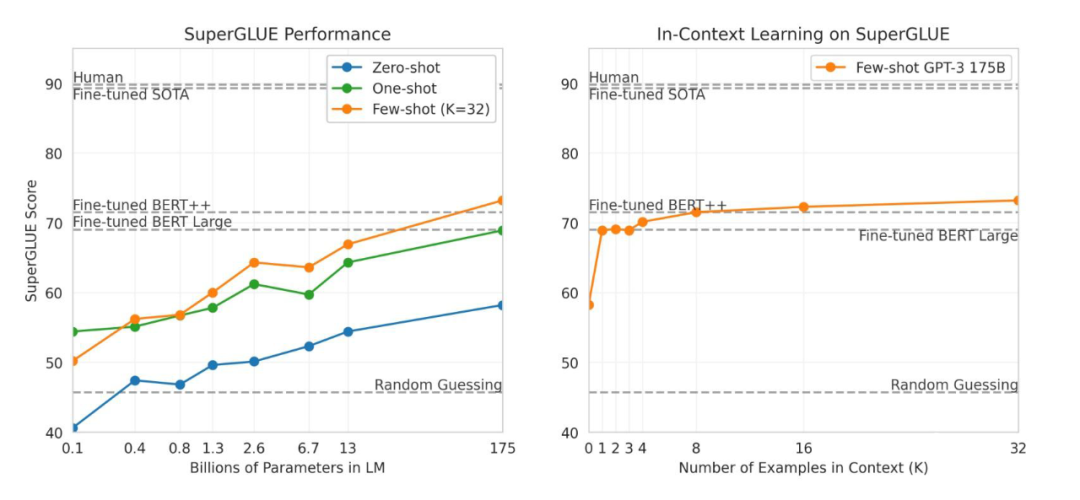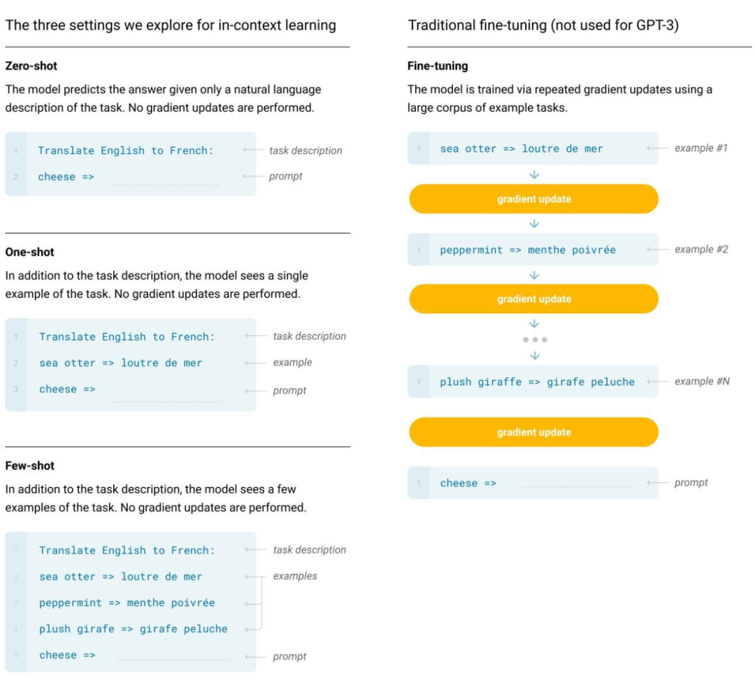 以人类的学习习惯对比,在人类有了足够的知识后(预训练),并不需要再看大量的监督数据才能做任务(对应微调),而只需要看少量样例即可。
