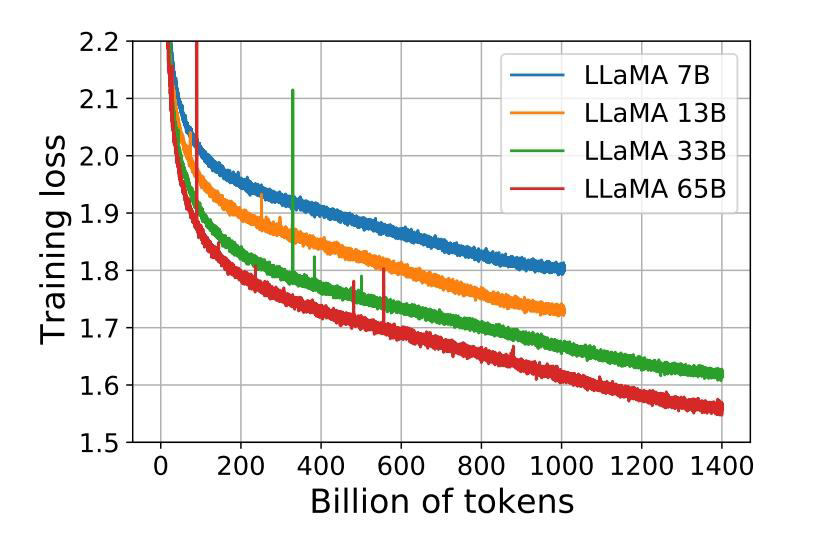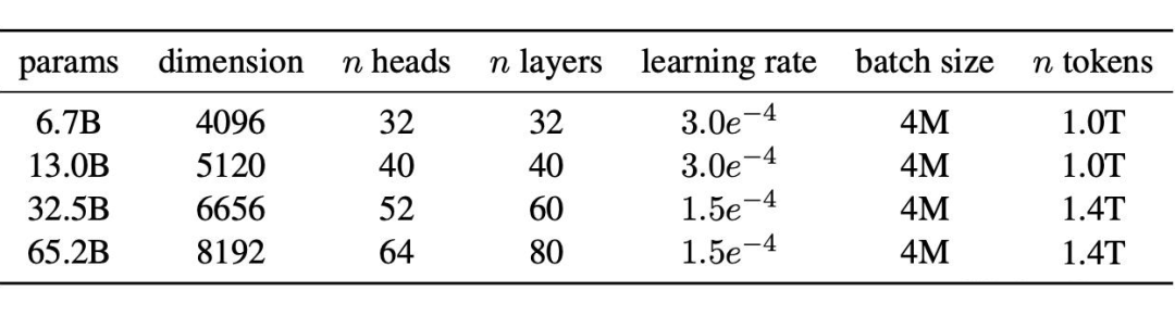 训练过程:7B 和 13B 的模型在 1T 的 token 上进行训练;33B 和 65B 的模型则在 1.4T 的 token 上进行了训练。