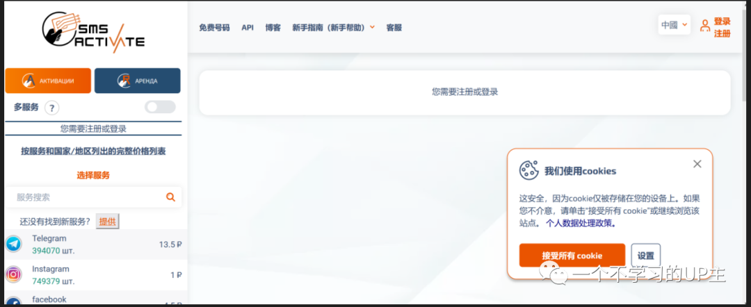 SMS接码平台,搜索SMS activate 官网即可
