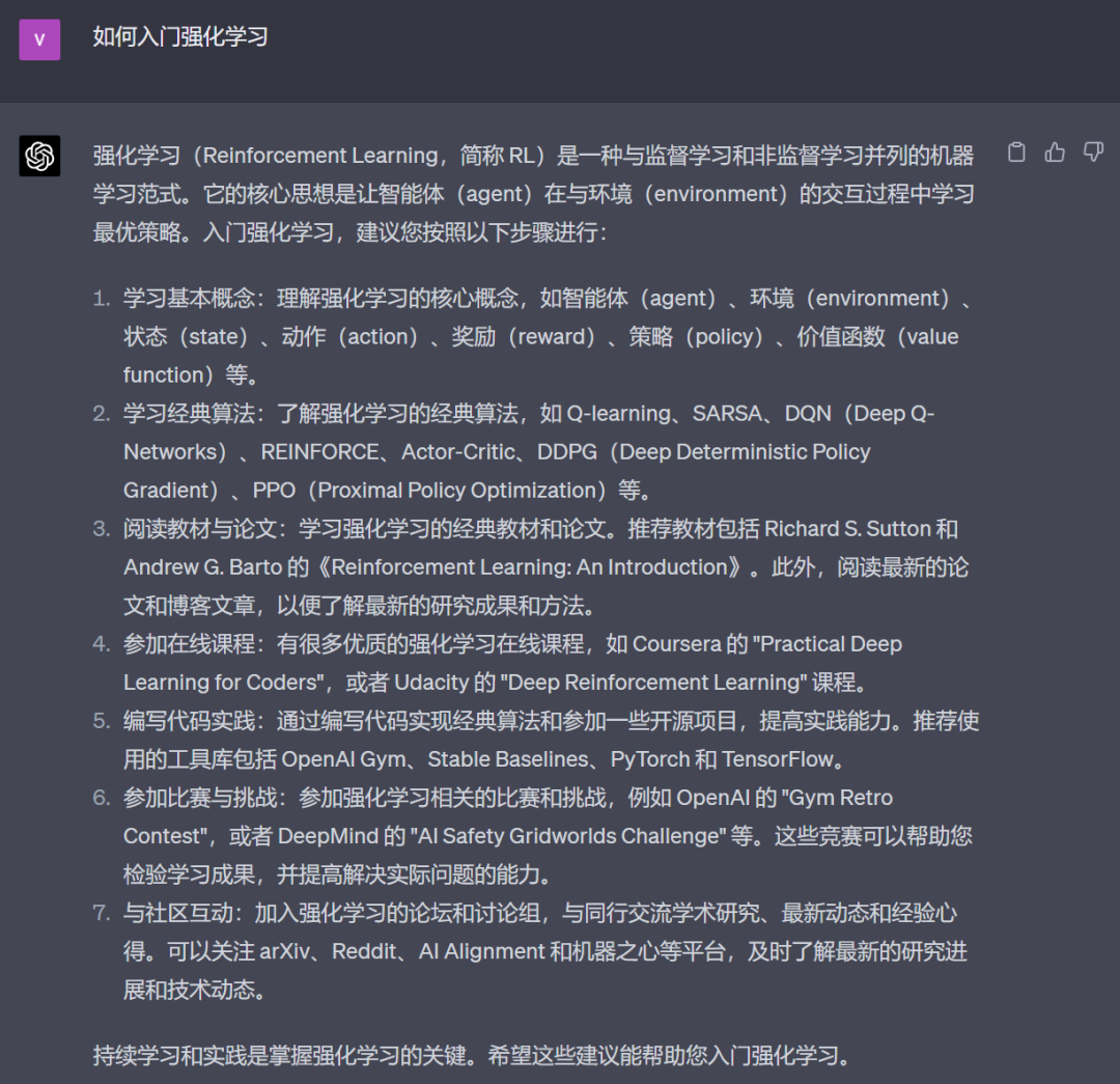 话不多说,直接问问ChatGPT咋入门强化学习。