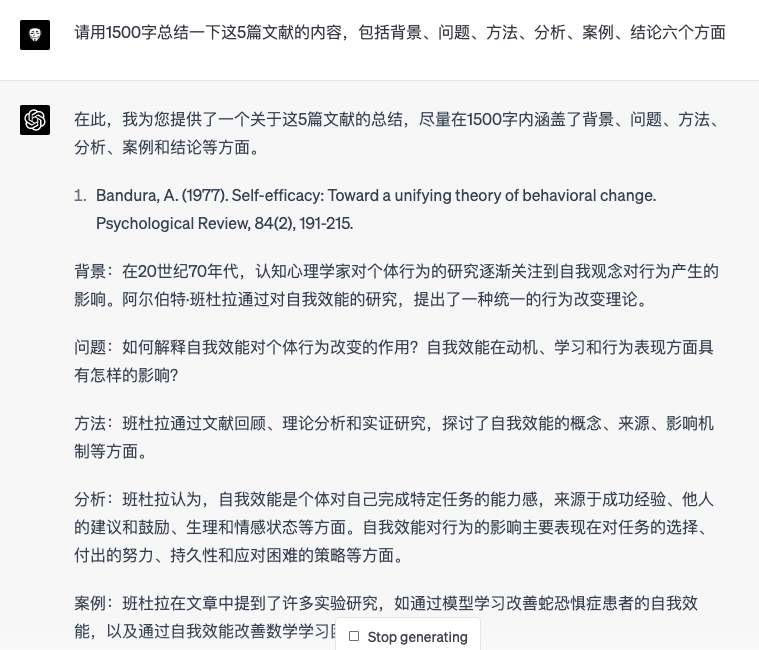 例如:你觉得对教育心理学这个概念比较感兴趣,是值得聚焦研究的概念,那么就可以进一步问ChatGPT,让它给你推荐一些学术文献。