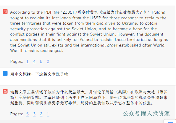 另外还有一个大亮点:支持Chatpdf对话,而且免费免账号!