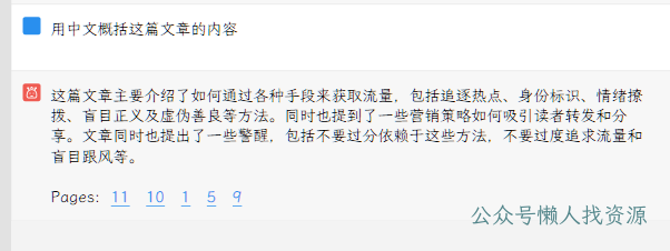 小懒举前几天群友分享的付费文《流量密码暗黑版》,让它对话分析,每份pdf支持50次对话。