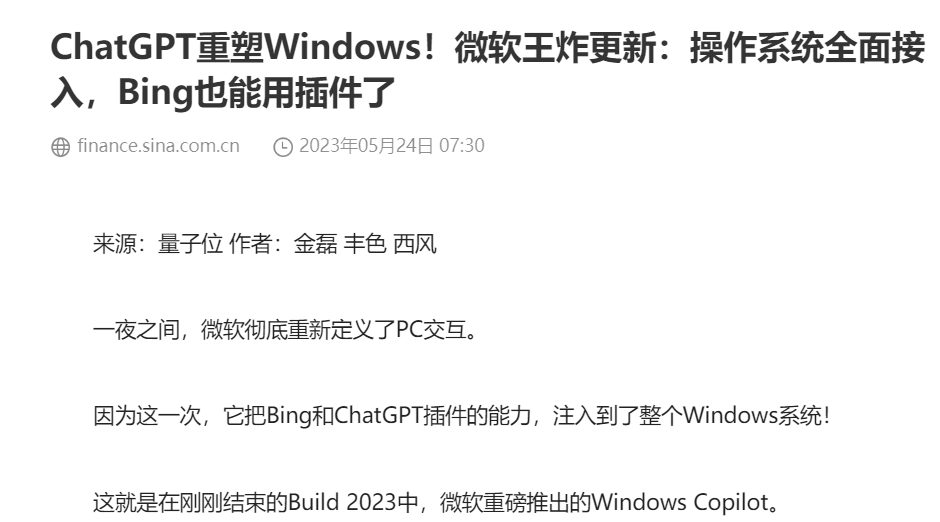 CHATGPT通过了公认难考的会计行业考试;微软彻底重新定义了PC交互。把Bing和ChatGPT插件的能力,注入到了整个Windows系统。面对ChatGPT带来的冲击财务人员如何应对?
