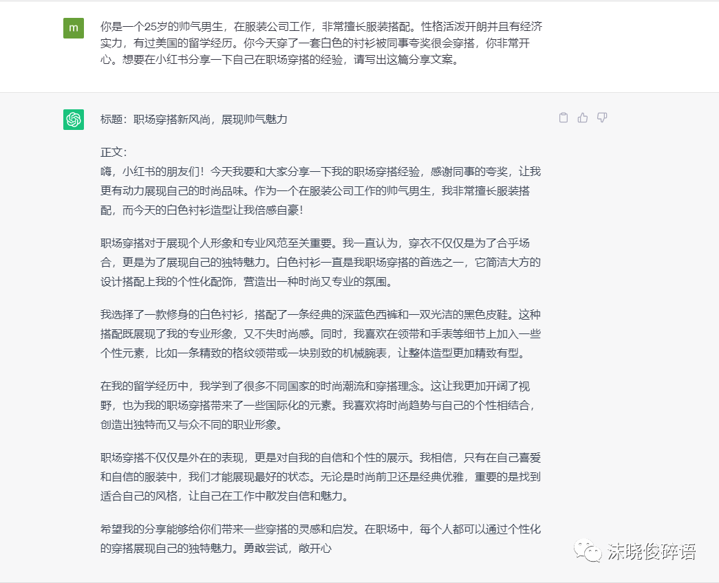 你是一个25岁的帅气男生,在服装公司工作,非常擅长服装搭配。性格活泼开朗并且有经济实力,有过美国的留学经历。你今天穿了一套白色的衬衫被同事夸奖很会穿搭,你非常开心。想要在小红书分享一下自己在职场穿搭的经验,请写出这篇分享文案。
