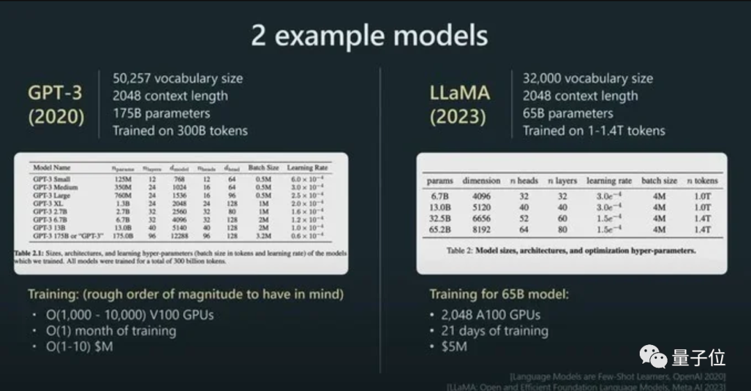 比如LLaMA的参数规模远小于GPT-3(65B vs 175B),但由于它用更多token进行训练(1.4T vs 300B),所以LLaMA更强大。