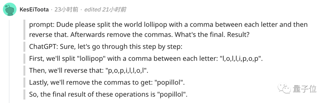 又或者让它写一个反转字母的程序,然后程序的结果对了。(狗头)