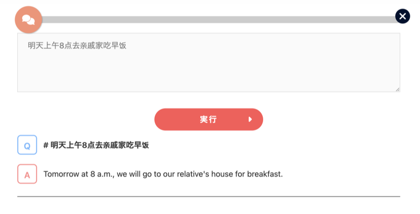 比如输入中文“明天上午8点去亲戚家吃早饭”,它就会默认翻译为英文。