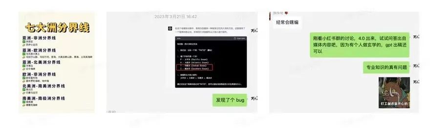 比如想让 ChatGPT 帮忙弄小红书某知识账号,但是发现很多连基础的知识都是错的,比如四大洋,它给出的答案都是错的,当然,后面大概猜了下原因和弄出了解决方案。