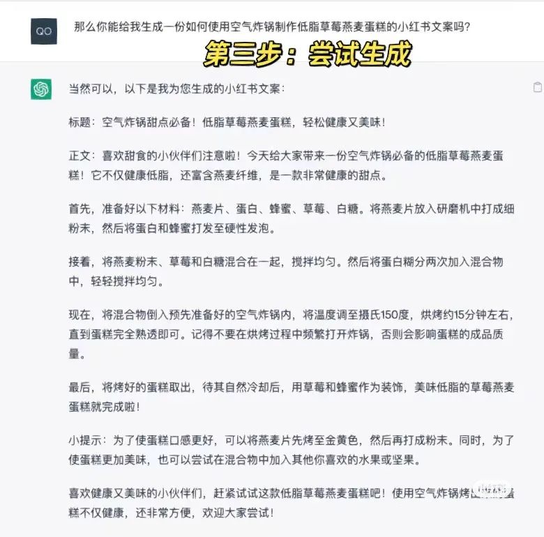 尝试让帮你生成一个如何使用空气炸锅做出低脂燕麦草莓蛋糕的文案