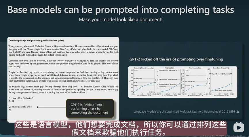 在完成基础模型之后,它还不是一个完整的人工智能助手,基础模型只能不断的根据你提供的句子去进行补全。所以需要提示词工程去让基础模型回答问题。
