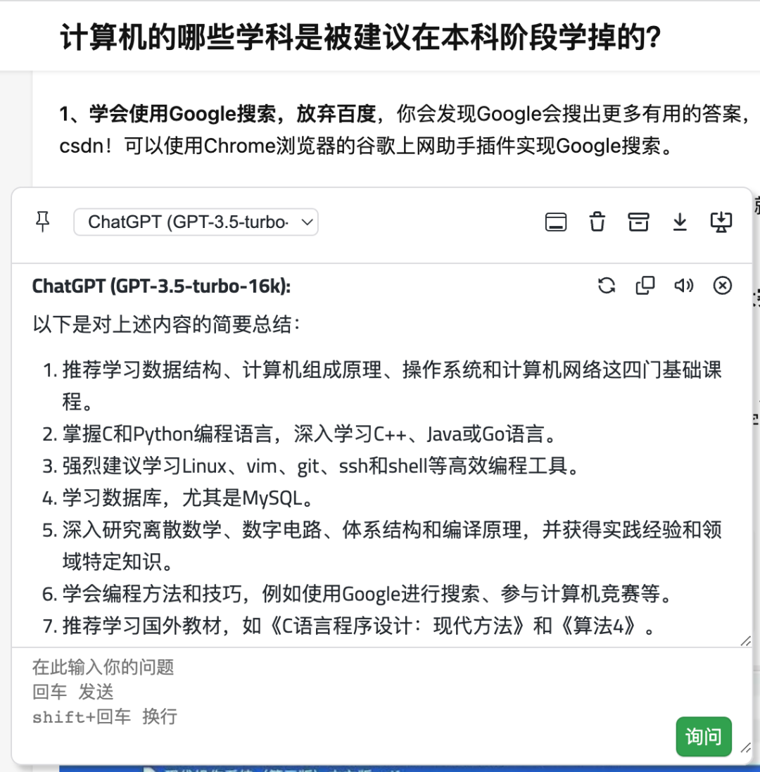 在我们平常的阅读中,可能没有太多的时间去把每一篇长文都读完,提炼主要内容,也是ChatGPTBox很厉害的功能