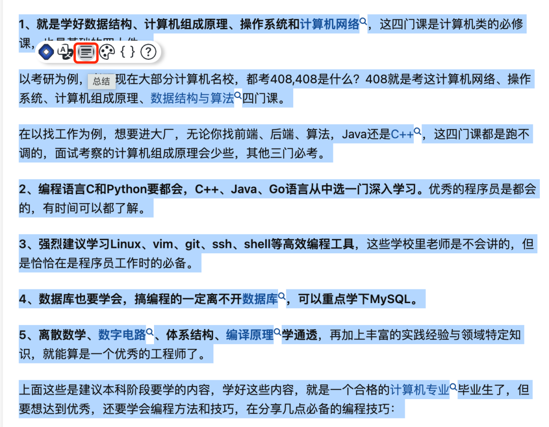 (2)选择内容,然后弹出ChatGPTBox图标的第二个,总结功能