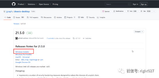 安装软件放在github仓库中,在页面中,选择相应的版本。本例中选择的是“Windows Installer”。