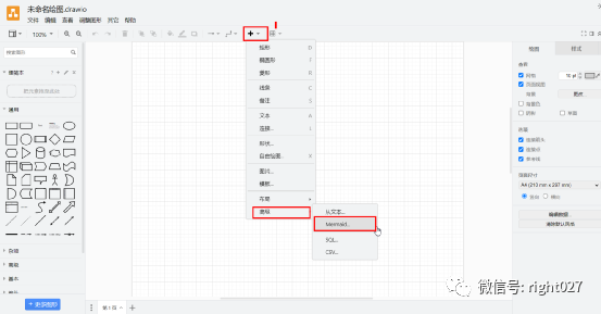 通过单击“+”>“高级”>“Mermaid”。